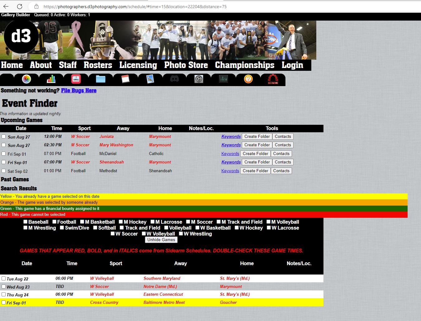 This may be a user issue but I initially selected a Women's Soccer game and then decided to cover a Football game on the same day. I clicked on the event I wanted to deselect and it disappears but even after exiting and logging back in it is still on the list. See attached.