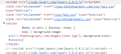 jQuery is called twice. First version 1.8.2, then later 3.6.4.